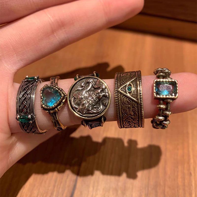 European and American Style Fashion All-match Internet Celebrity Atmospheric Opening Adjustable Vintage Rhinestone Adjustable Ring for Women