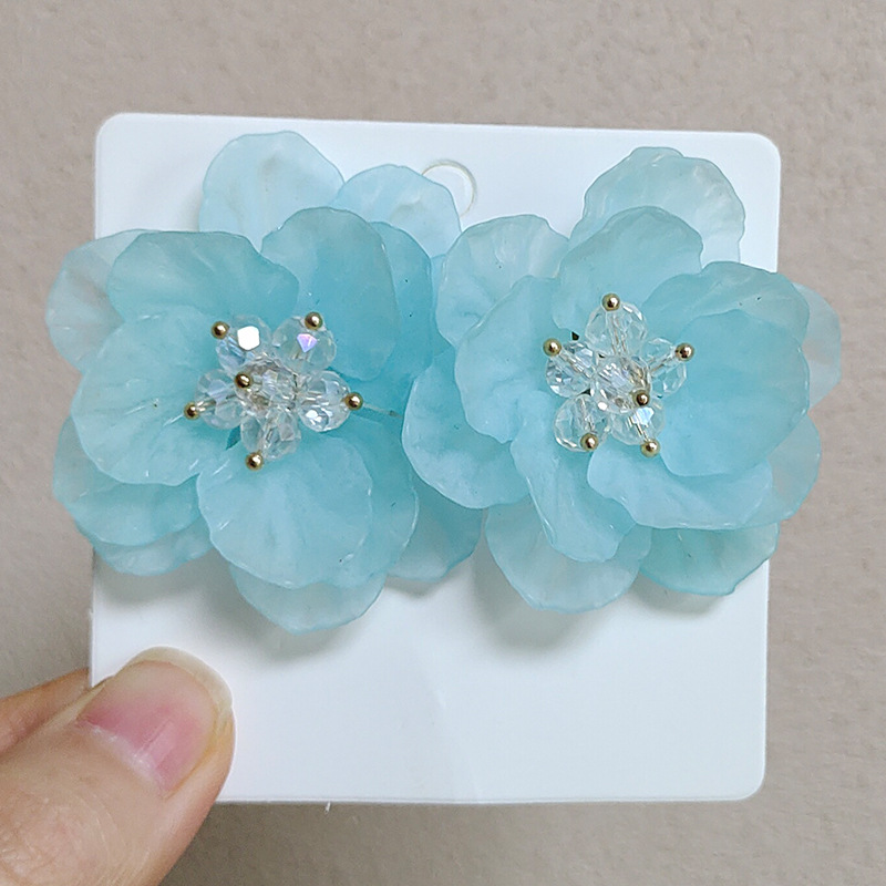 Blue Flower Earrings Exaggerated High-end Light Luxury Three-dimensional Unique Earrings Design Fashion All-match Distinctive Earrings