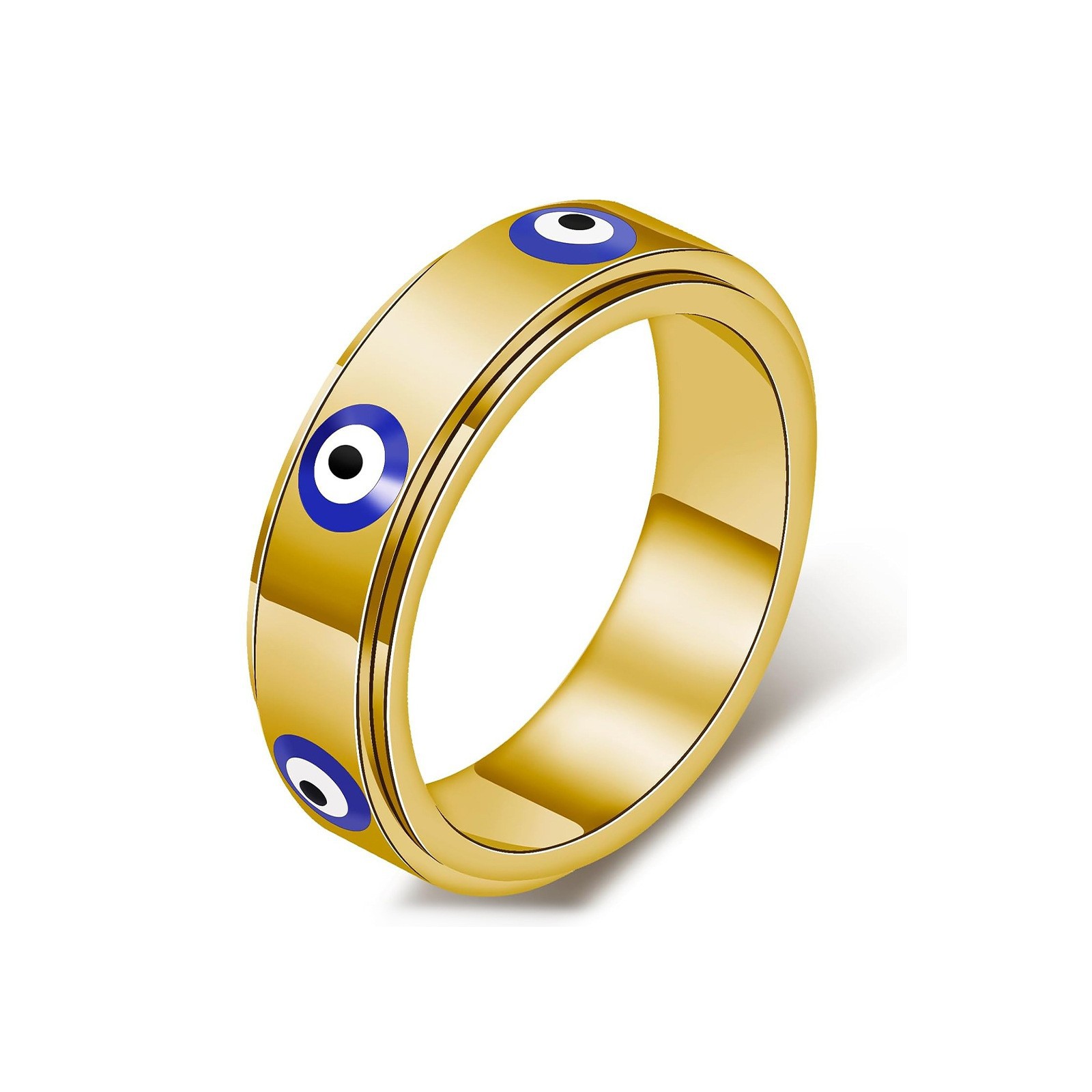 Amazon's Hottest Gold-Plated Devil's Eye Titanium Steel Ring Blue Evil Eye Rotatable Ring for Men and Women