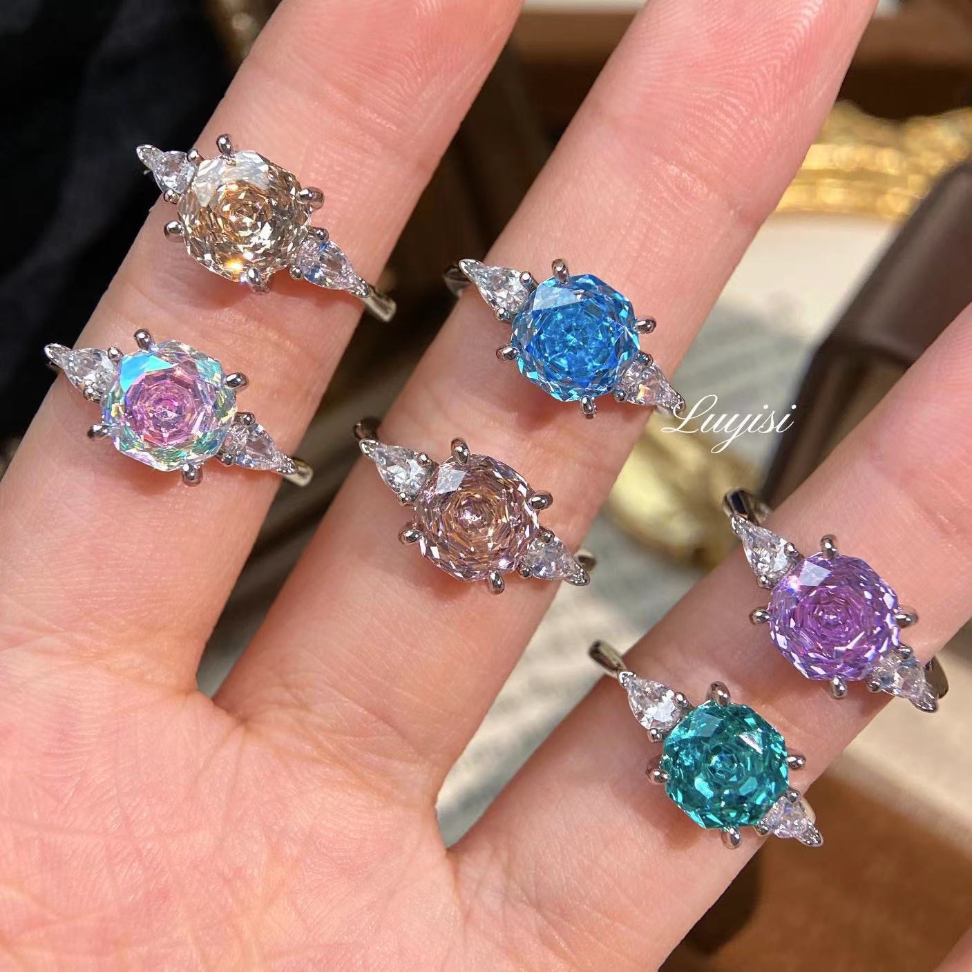 Live Broadcast Hot Selling Octagonal Millennium Rose Cut Paraiya Ring Accessible Luxury High-End Blue Rose Ring for Women