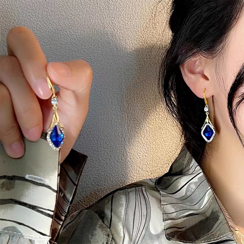 Blue diamond ear buckle earrings female niche earrings new light luxury High sense summer trendy temperament ear jewelry