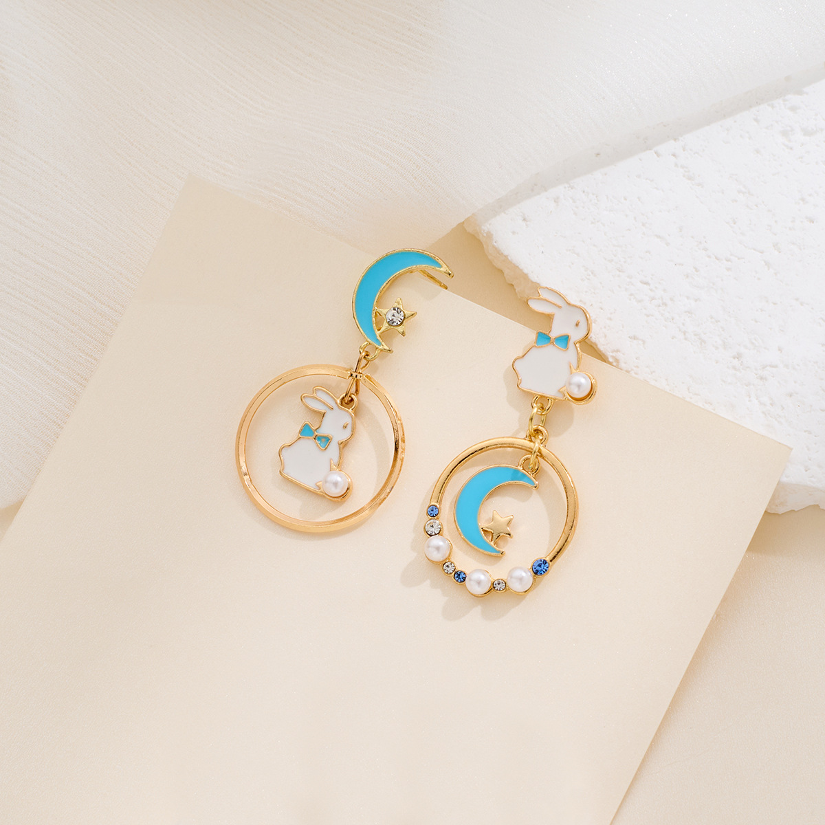 Silver Needle Cartoon Cute Asymmetric Cute Rabbit Earrings Internet Popular Girl's Heart Sweet Alice Earrings