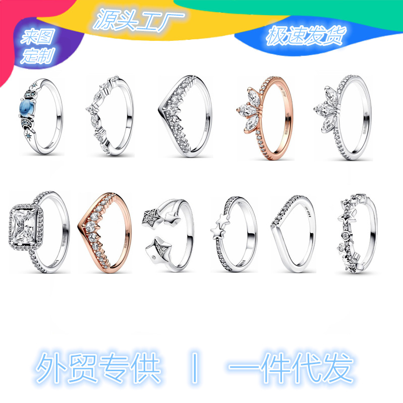Pan Meili's New Product Launches White Copper Silver-Plated Blue Diamond Crown Ring Five-Pointed Star with Diamond Sparkling Ring