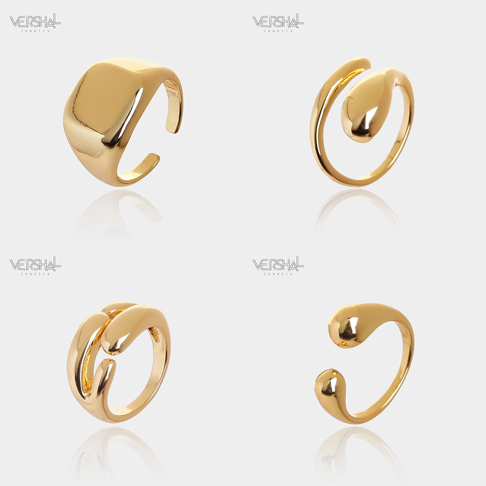 Amazon Hot Sale Water Drop Ring Premium Logo Ring Coarse Gold Plated Open Twist Cross Stacking Ring