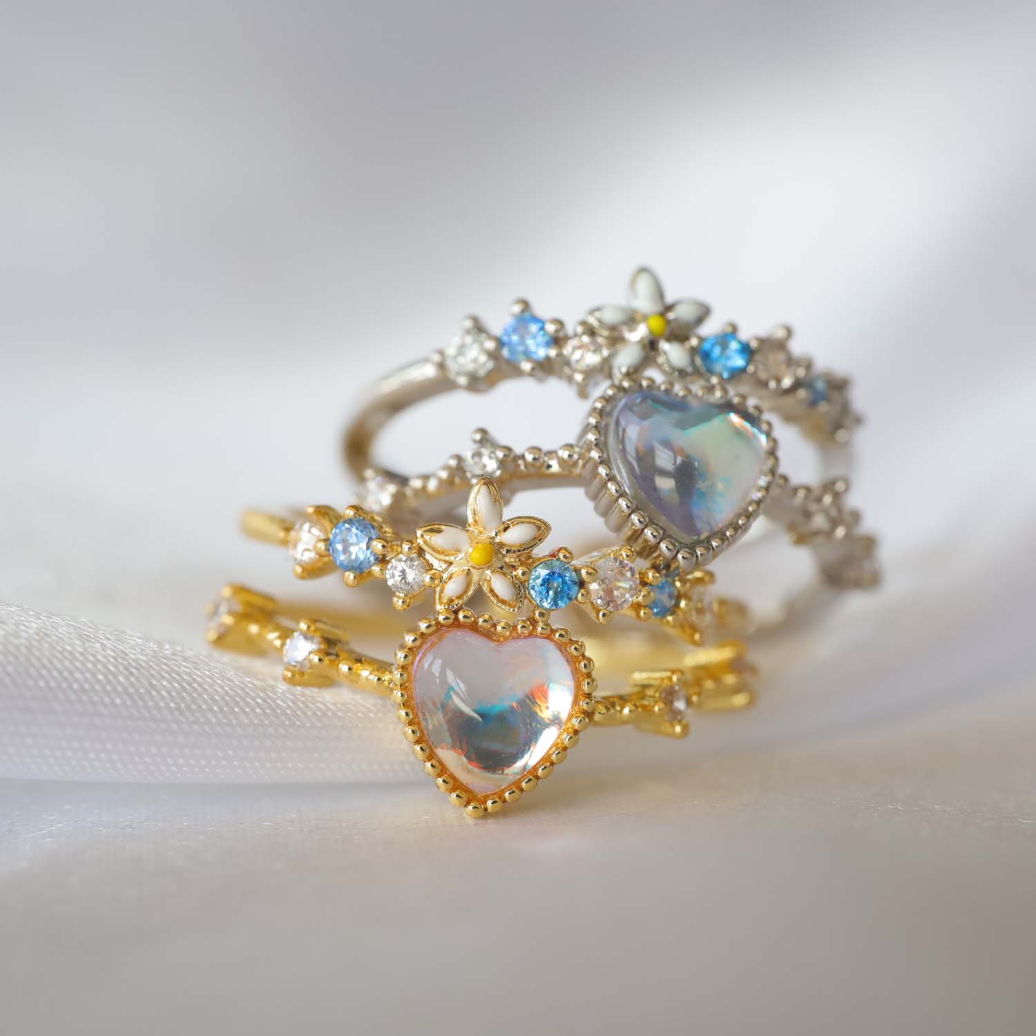 Heart Moonlight Sea Blue Zircon Open Ring Women's Accessible Luxury Niche Design Index Finger Ring Elegant Adjustable Ring
