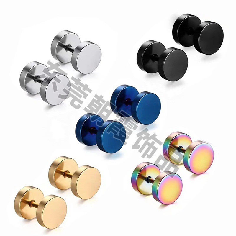 Cross-Border 316 Stainless Steel Bar Earrings European and American Fashion Titanium Steel Round Cake Earrings Men's and Women's Jewelry Wholesale European and American Style