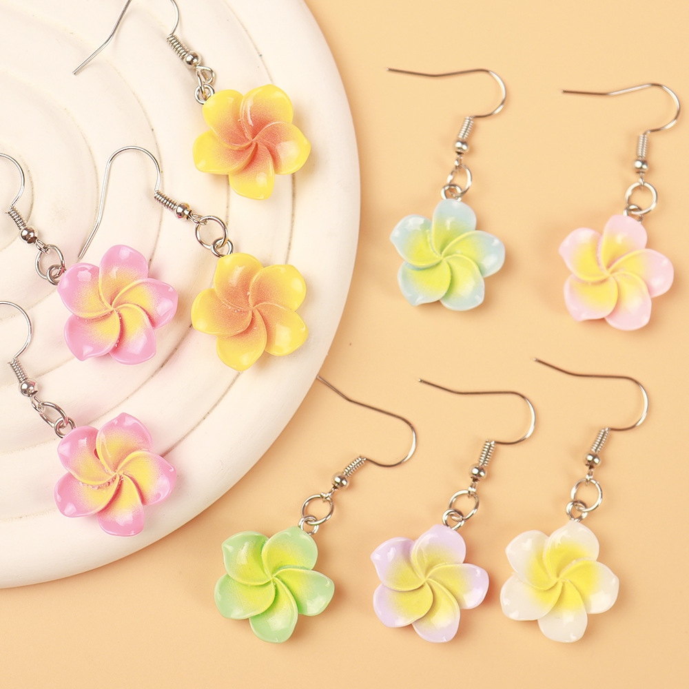 Tropical Bohemian Color Resin Egg Flower Earrings Long Ear Drop Resin Temperament Ear Stud Earrings Earrings