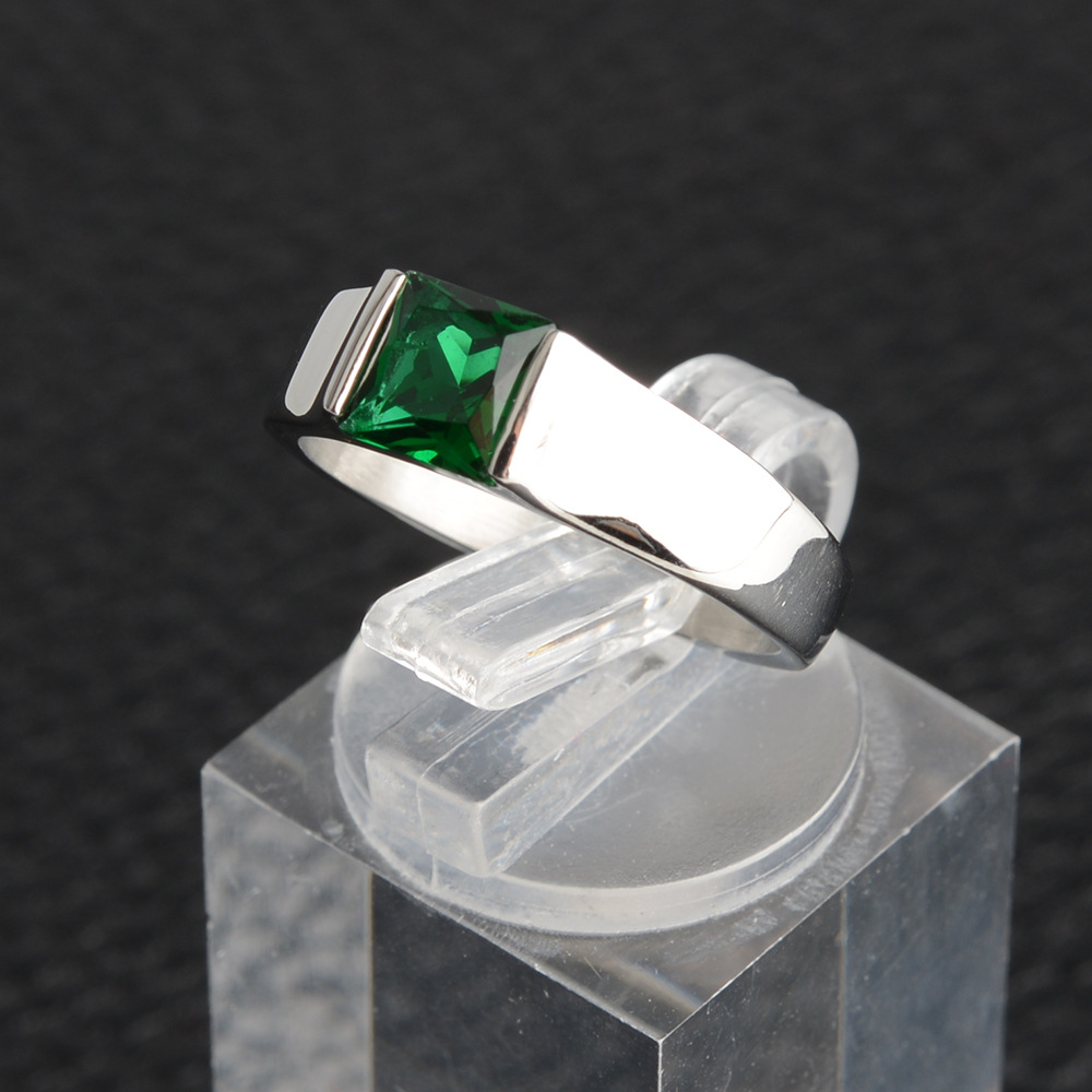 Foreign trade titanium steel 316 stainless steel zircon wedding ring Men's Women's ring ring princess cut zircon