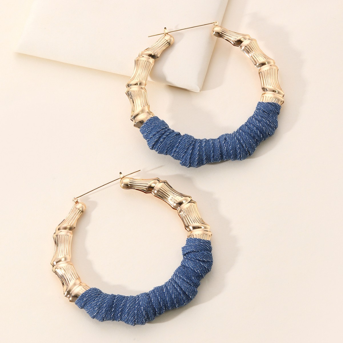 Cross-border fashion exaggerated denim blue retro earrings European and American high sense circle earrings