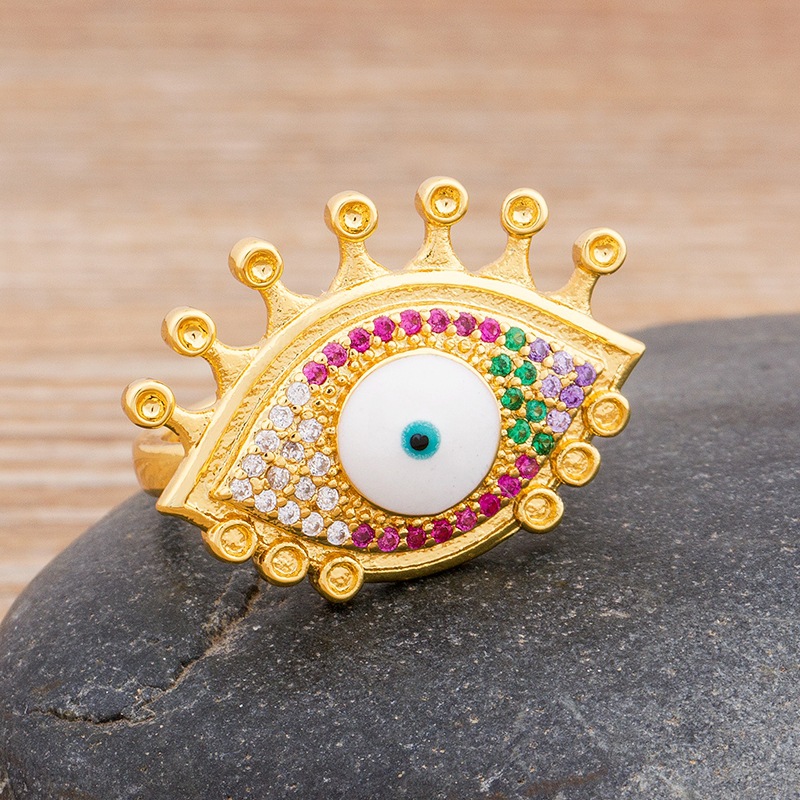 Copper Plated 18K True Gold Europe and America Cross Border Evil Eye Ring Zircon Oil Drop Bohemian Devil Eye Ring