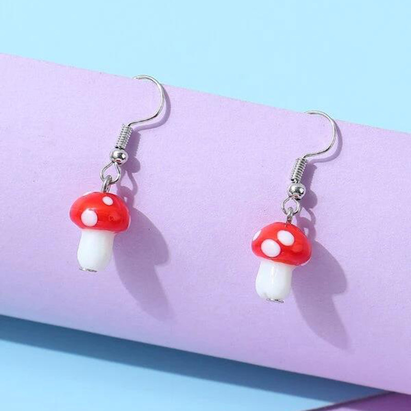 European and American Cross-border New Ear Jewelry Red Spotted Mushroom Earrings for Women Creative Retro Pastoral Style Plant Earrings