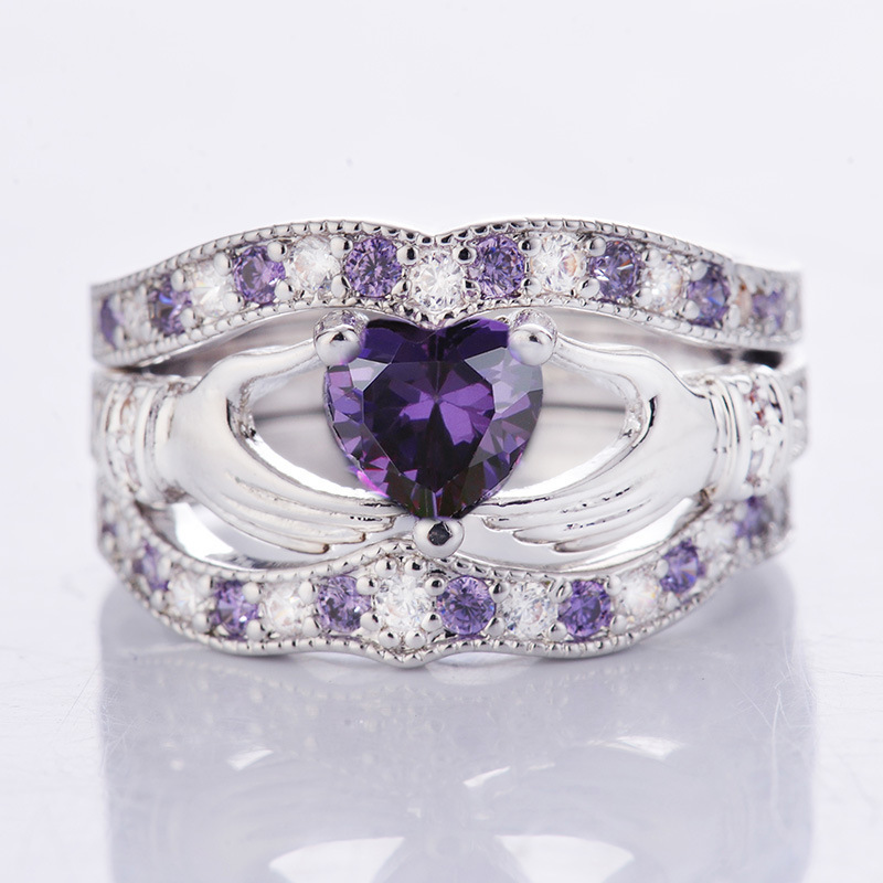 Huaya Three-Piece Set of Eight Hearts and Eight Arrows Zircon Ring Cross-Border E-Commerce Export Micro-Embedded Jewelry Fashion Heart Diamond Ring