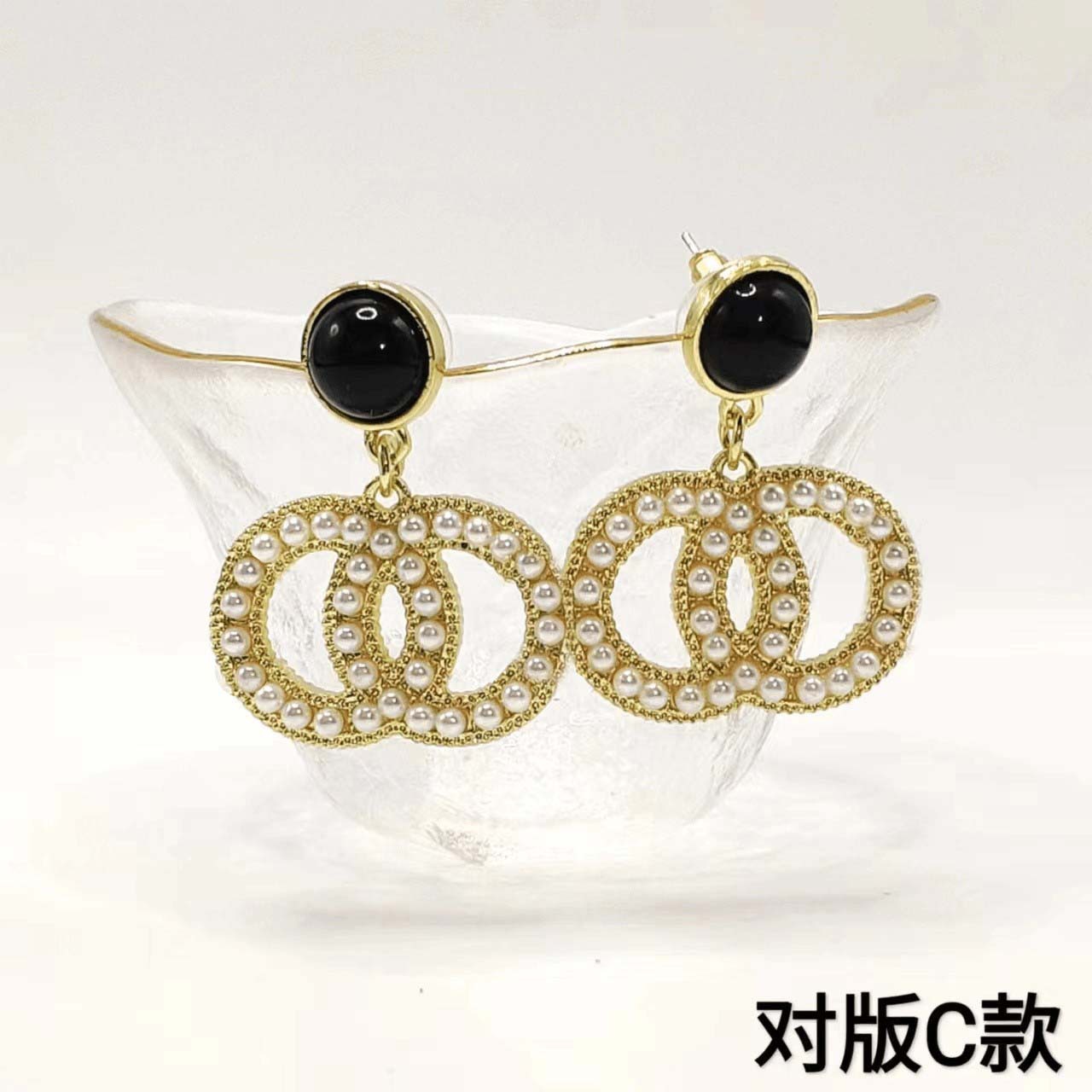 TikTok Explosions Double-sided Pearl Fragrance Granny Earrings Ins Style Gentle Temperament Advanced Sense Double C Letter Drop Earrings Earrings
