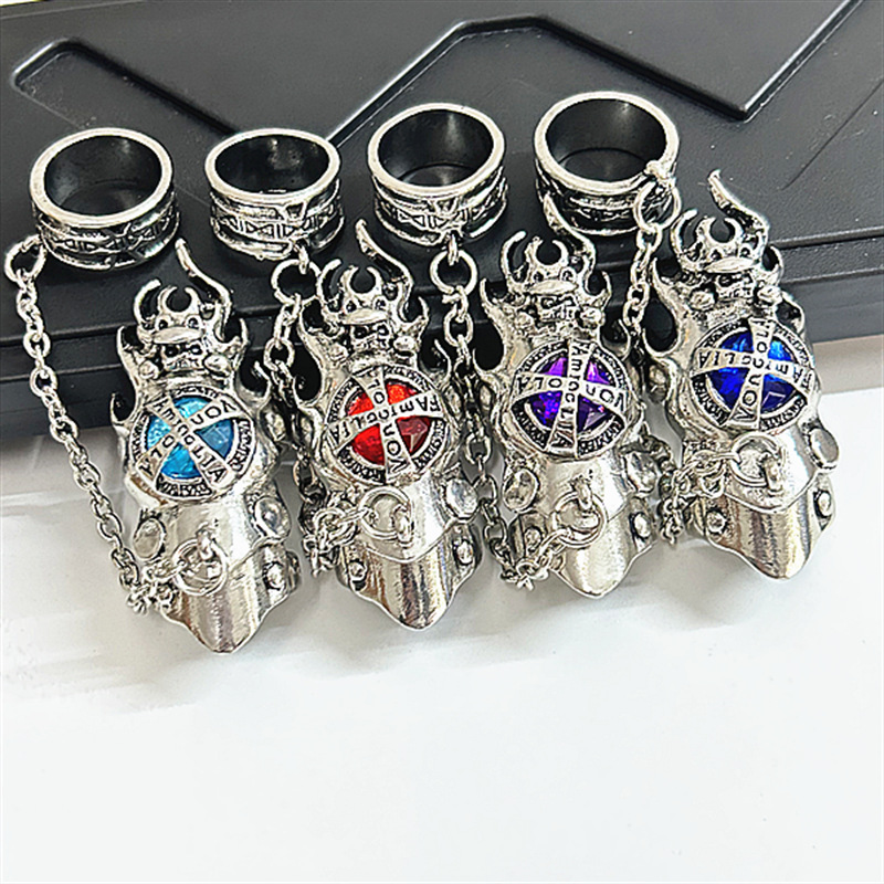 European and American New rotating gemstone double ring tide male animation skull head joint ring ring ring chain suit