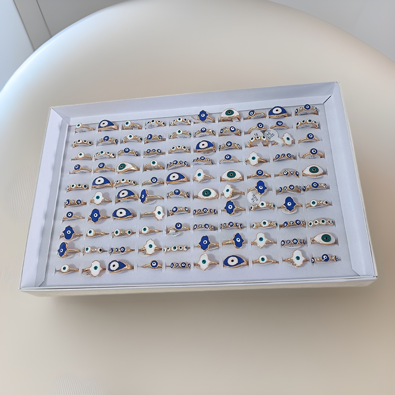European and American Best-Selling Devil's Eye Personalized Blue-Green Diamond Oil-Drip Alloy Ring Mixed Foreign Trade Yiwu Supply