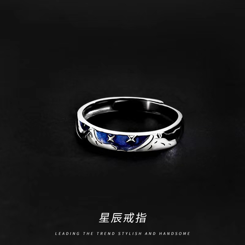 Blue Star Ring for Men Trendy Niche Ins Style Single Index Finger Ring Fashion Fresh Resin Men's Open Ring