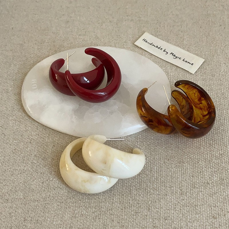 Casual C-Shaped Resin Earrings for Women Korean Niche Fashion Stylish Work Clothing Versatile Earrings