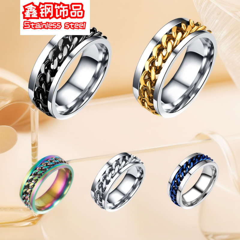 Stainless Steel Chain Ring with Rotatable Roman Numerals, Titanium Steel Ring, Cross-Border Supply, Hot-Selling Rotatable Ring