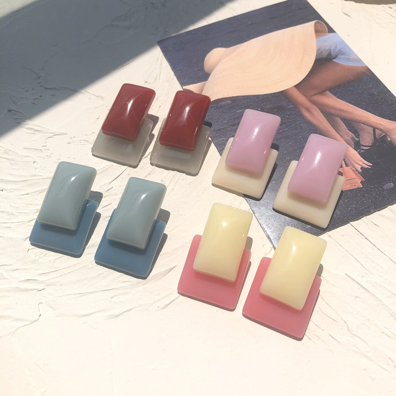 Korean Dongdaemun Same Style Square Color-Blocked Resin Earrings 925 Silver Exaggerated Elegant Simple Versatile Earrings Earrings