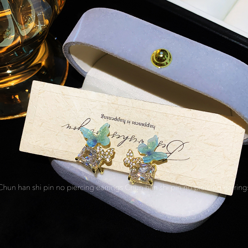 New Zircon Ice Blue Small Butterfly Earrings Ear Clip Mosquito Coil Disc Women's Niche Accessible Luxury High-End Earrings Earrings