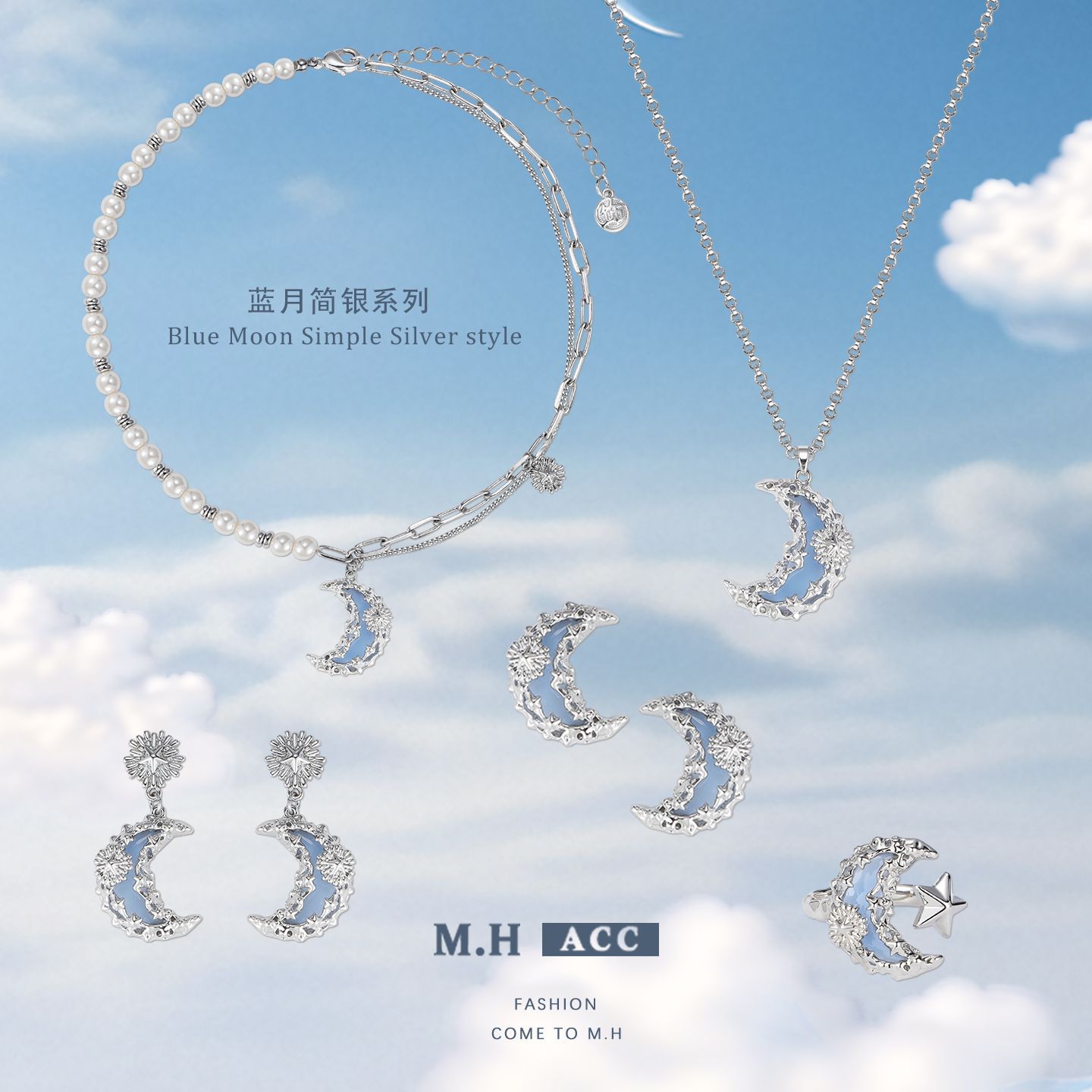Lava Blue Moon Series Original Design Earrings, Fashionable Versatile Light Luxury Sweet Cool Style Drop Earrings