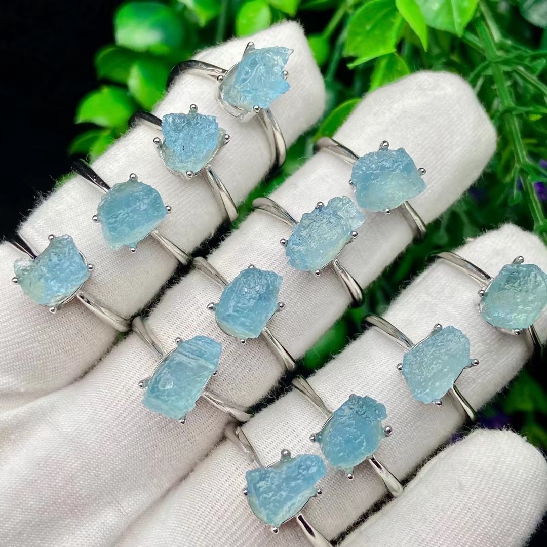 Natural Aquamarine Raw Stone Ring for Women, Random Ring Decoration, Crystal Transparent and Fresh Blue Aquamarine, Direct from Manufacturer
