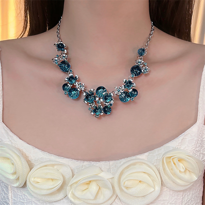 [Blue Phantom] Heavy-Duty Blue Bobo Ball Pendant Necklace Niche Exaggerated Style Exquisite Accessible Luxury Choker Necklace
