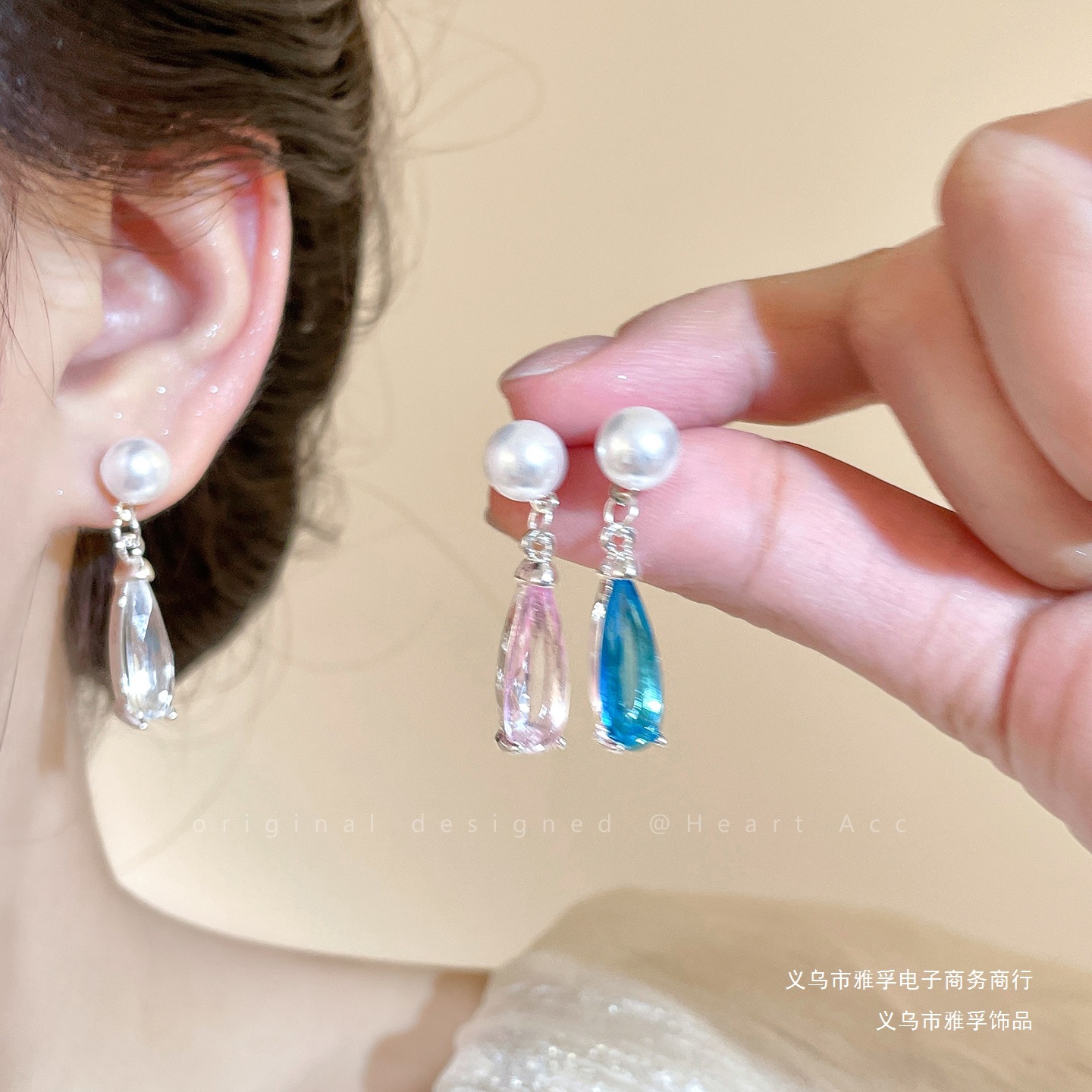 Beauty Tears! Water Drop Zircon Pearl Silver Needle Earrings for Women, Accessible Luxury, High-End and Exquisite Earrings, Suitable for Summer Earrings