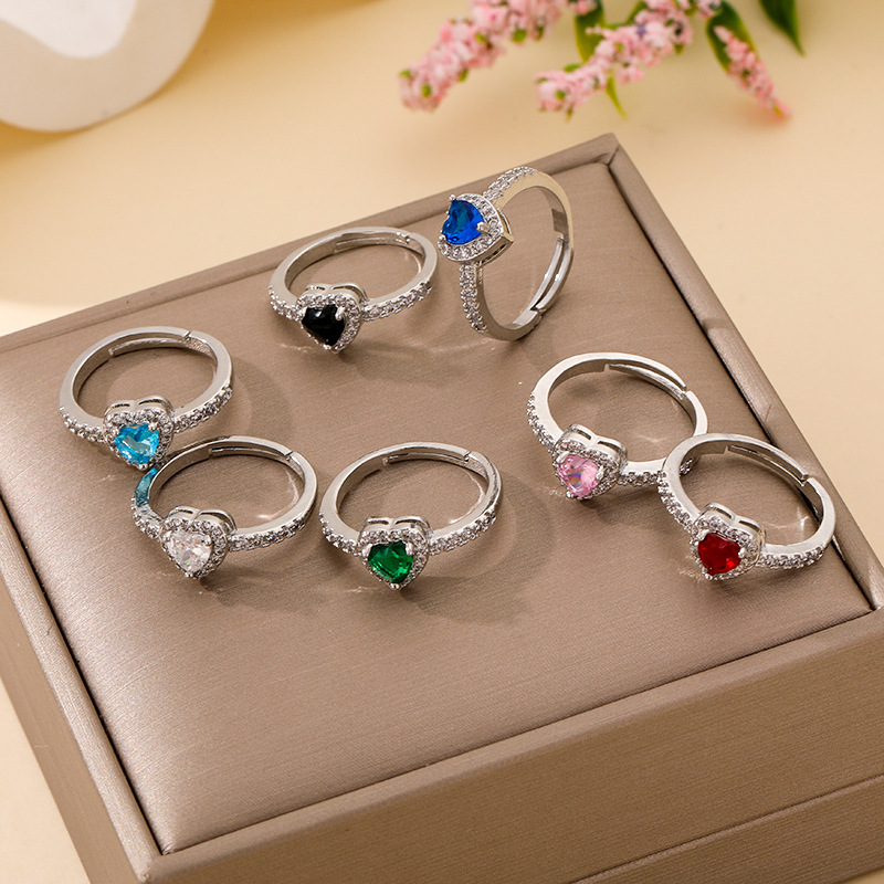 Cross-Border Hot Selling New Style Zircon Multi-Color Love Ring for Women, Light Luxury, High-End, Personalized Adjustable Ring Bracelet