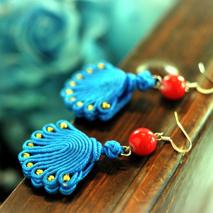 Wanxing Retro Blue Ceramic Tassel Earrings Light Luxury High-End Stainless Steel Earrings Cross-Border Jewelry Design