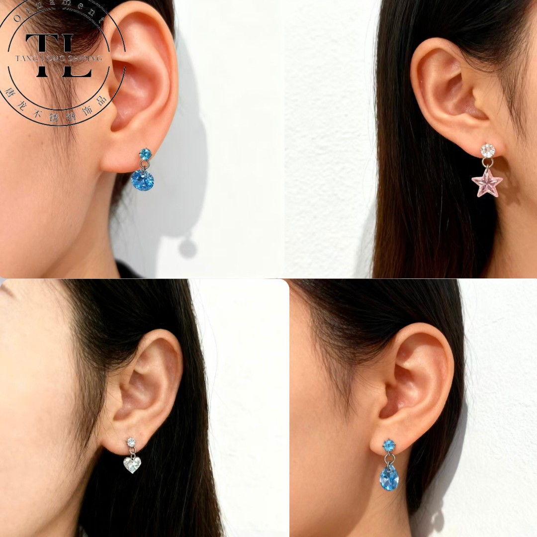 F136 Titanium Alloy Inlaid with 5A Zircon Earrings, Heart Water Drop Five-Pointed Star Zircon Earrings, Elegant Super Flash Earrings