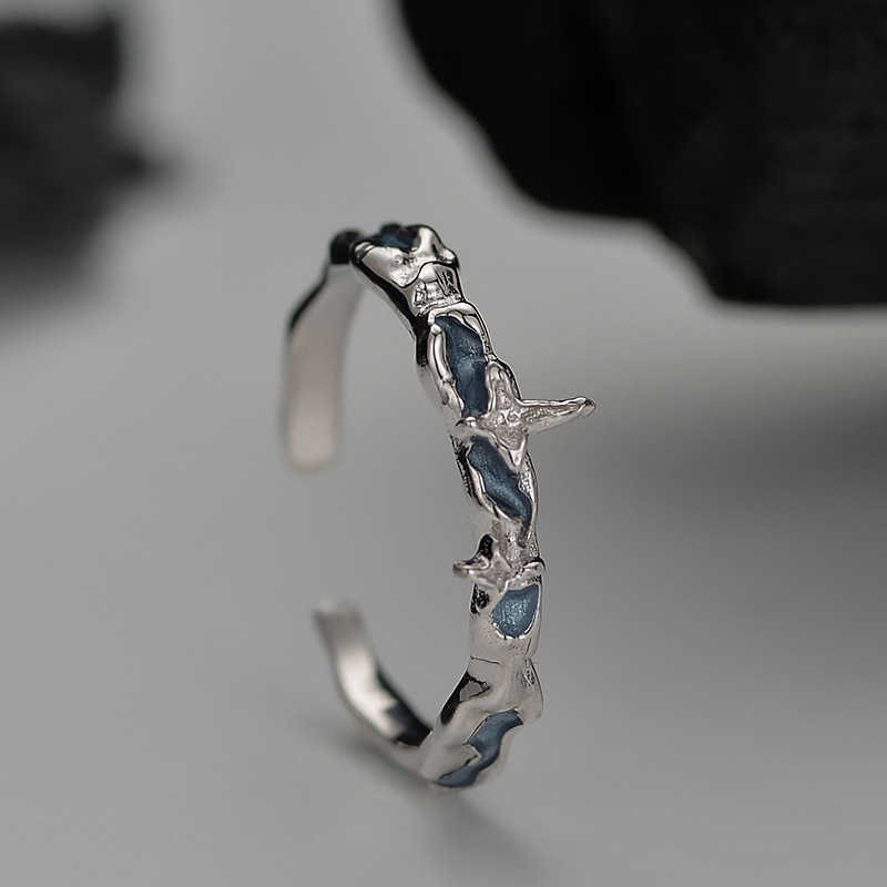J1399 Korean Style Small and Exquisite Niche Design S925 Sterling Silver Sea Blue Drop Glaze Star Ring Women's Fine Ring