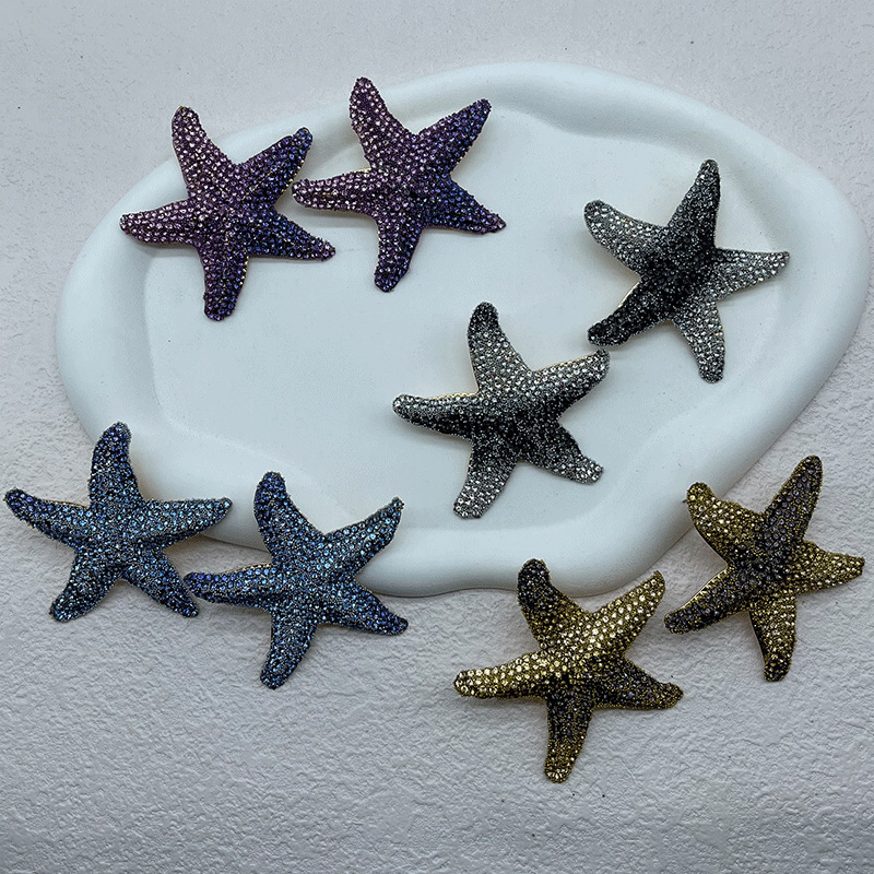 European and American cross-border earrings niche starfish colored glass full diamond light luxury earrings fashion earrings high-grade earrings for women