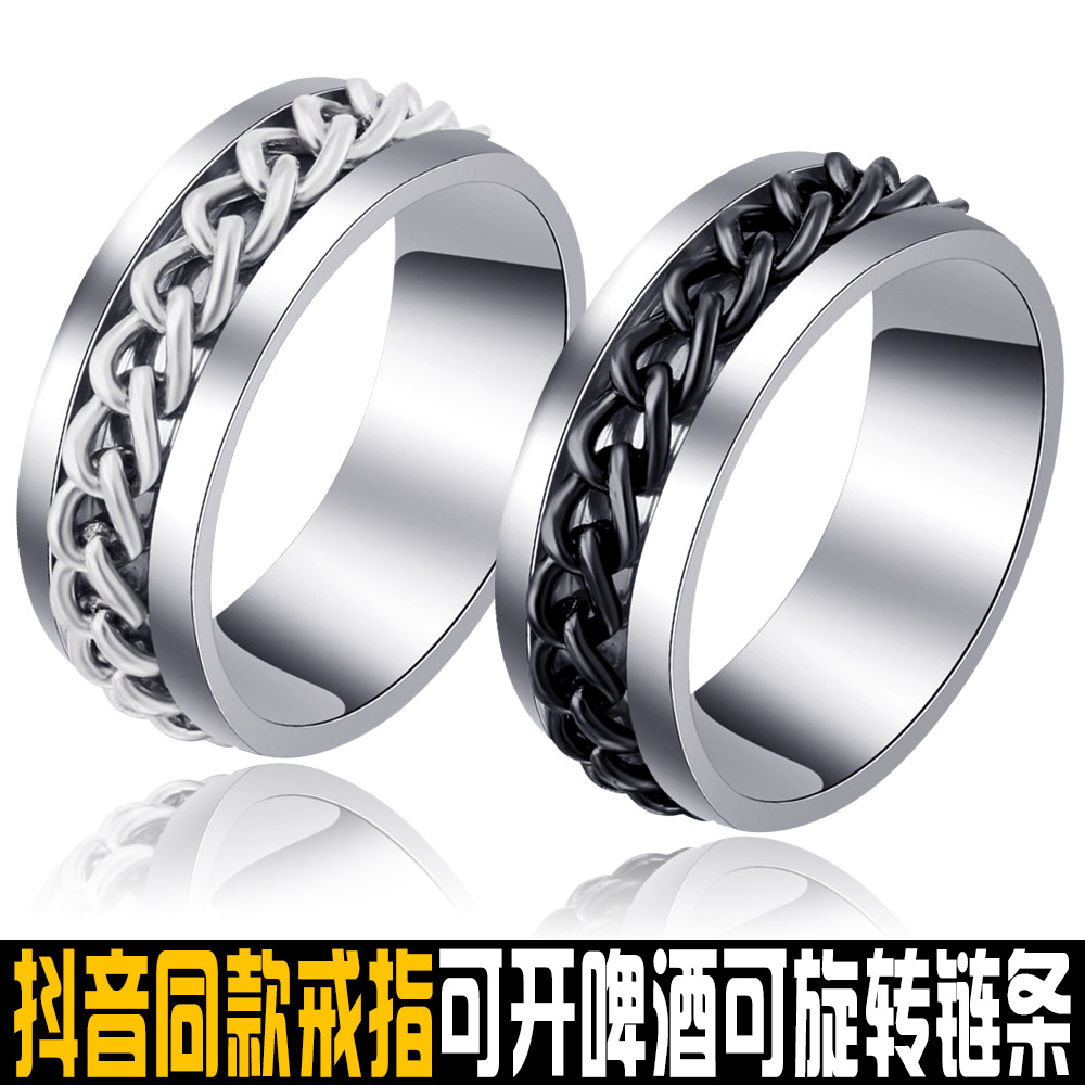Street Stall Jewelry Ring Men's Beer Bottle Cap Rotatable Ring Rotatable Titanium Steel Rotating Ring