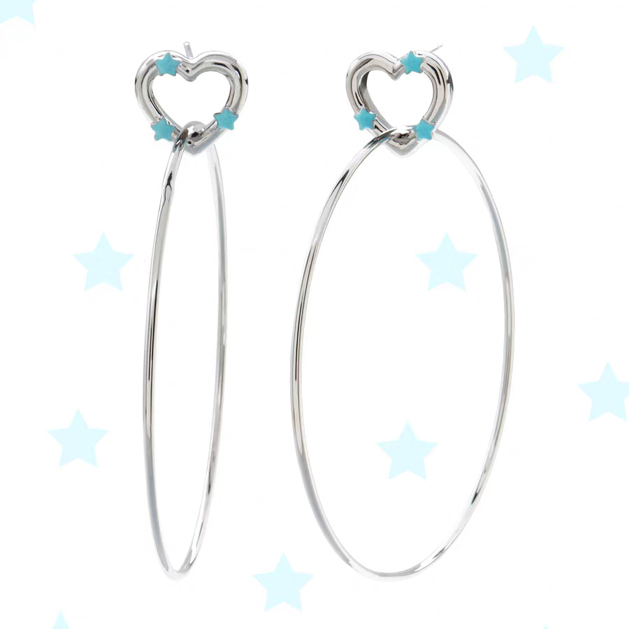 Harajuku Style Blue Star Love Large Hoop Earrings Exaggerated Design Earrings