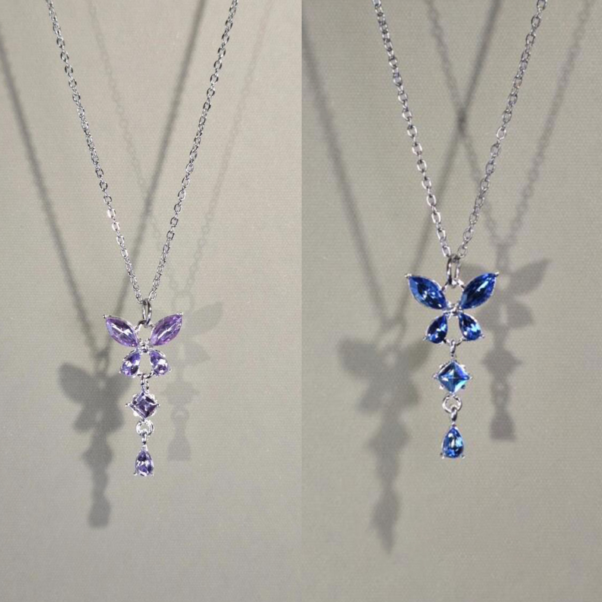 "Blue Butterfly Dream" Sparkling Blue Zircon Butterfly Tassel Necklace, Cool and Luxurious, Versatile Clavicle Chain