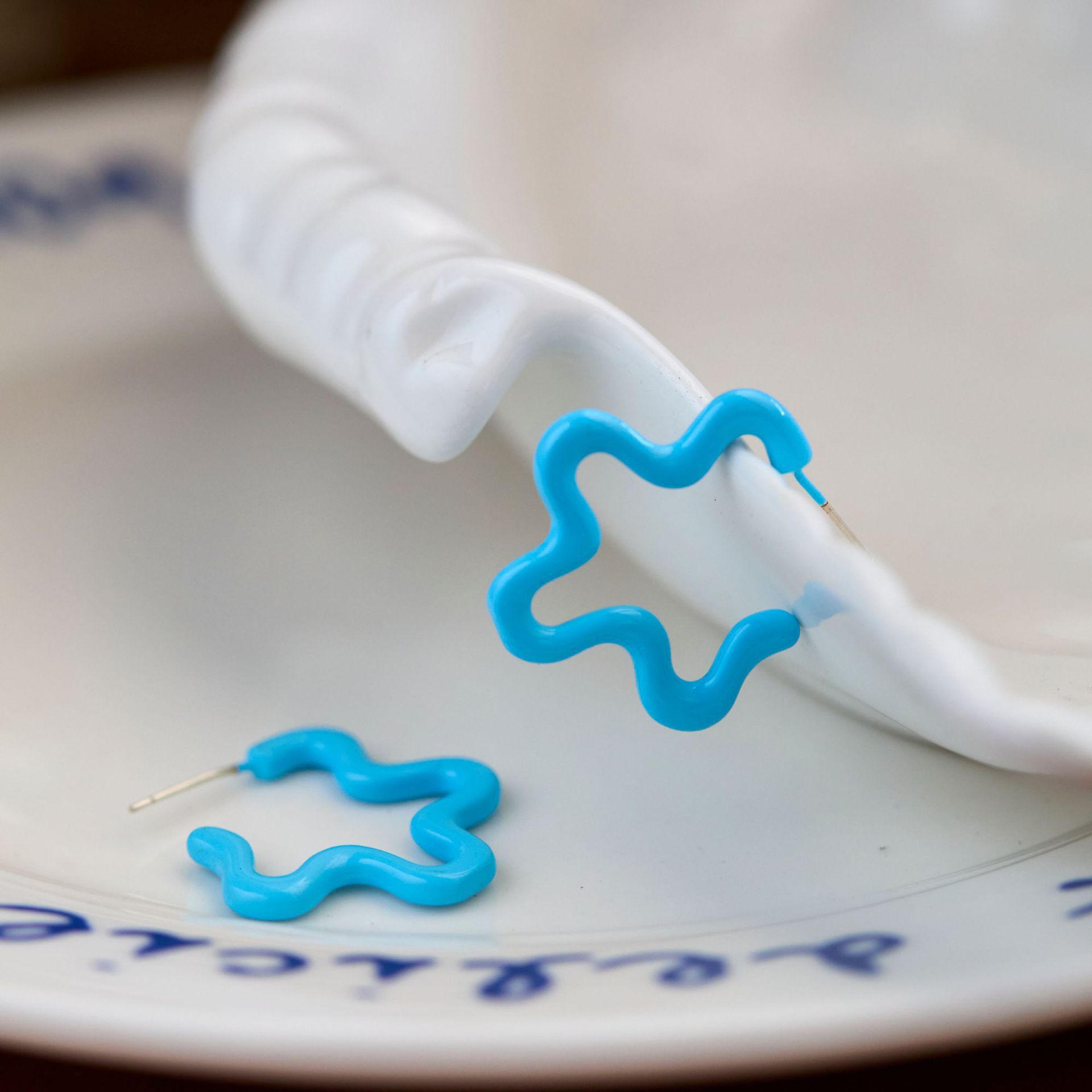[Milk Blue Star] Fresh Cream Blue Earrings with Lines and Flowers, Girly Heart Earrings, Simple Forest Style Ear Clips