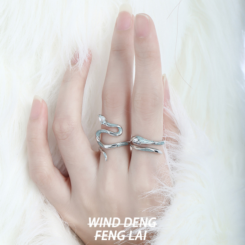 Unique 2024 Women's Ice Blue Snake Ring Jewelry Niche Unique Design Ocean Couple Ring Open Ring Year