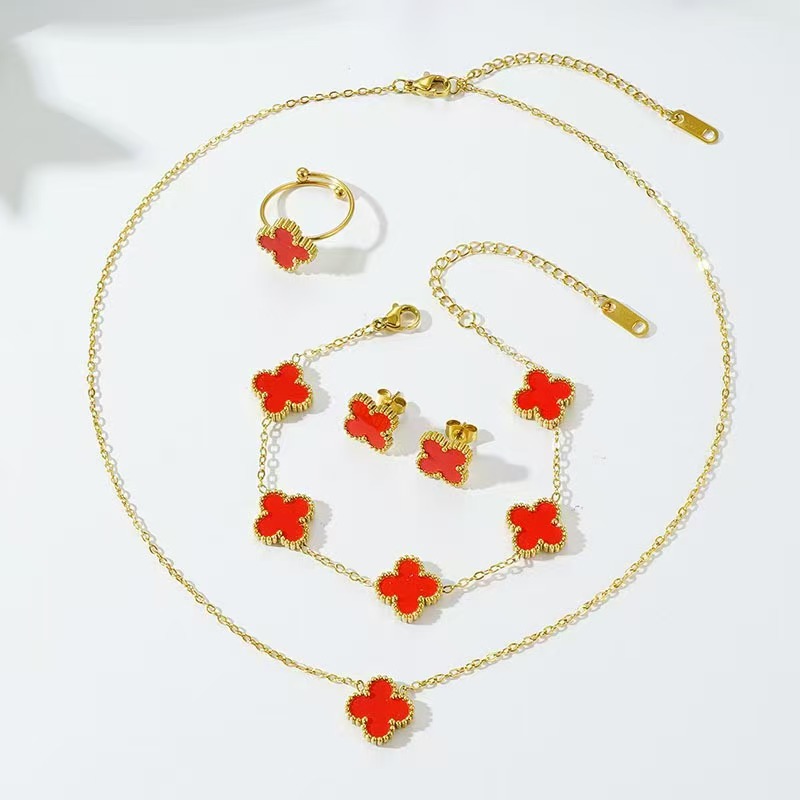 13mm Lucky Four-Leaf Clover Set Trendy Fashion Simple Popular Set High-End 18K Stainless Steel Jewelry