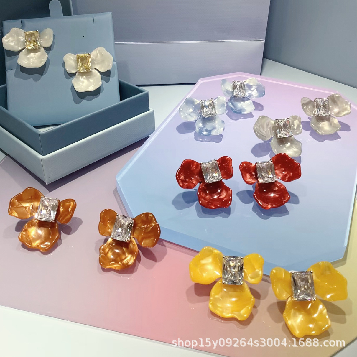 Hefag Hejia Jewelry White Iris Sugar Cube Earrings Light Luxury Elegant High-End Jewelry Accessories Earrings