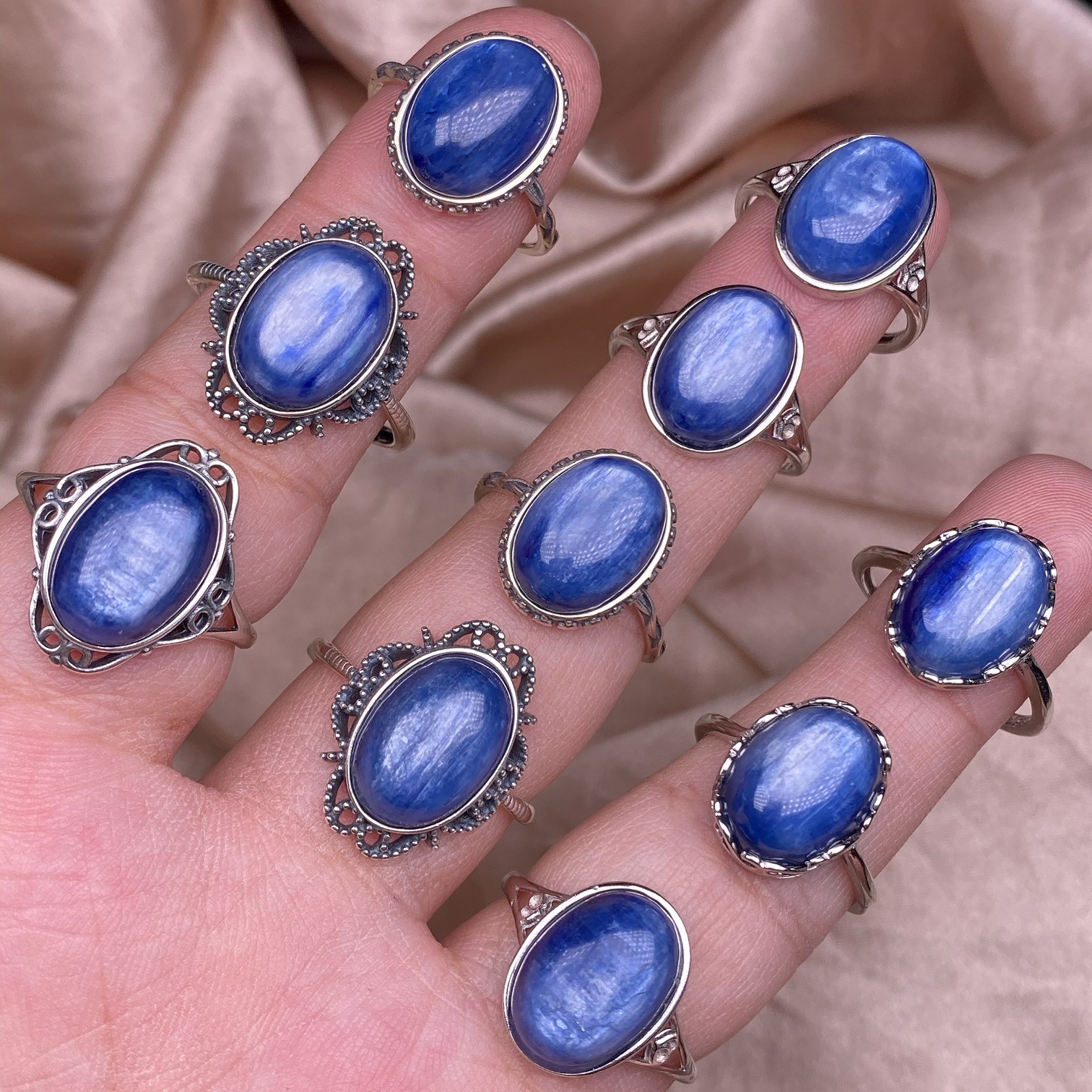Kyanite ring s925 silver inlaid retro exquisite commuter fashion ol women's jewelry style rich and novel
