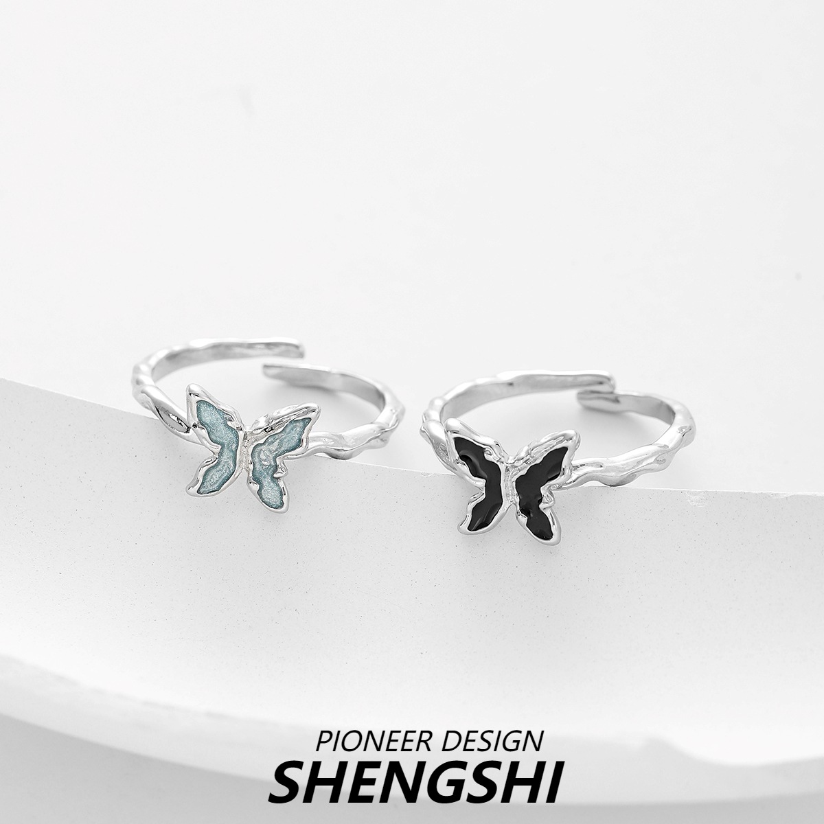 Original High-grade Glacier Blue Hu Drop Glue Butterfly Ring Women's Niche Personality All-match Fashion Adjustable Diet Finger Ring Jewelry