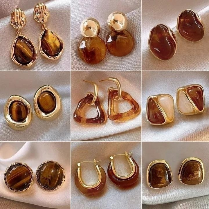 14K Real Gold Electroplated Silver Needle Tiger Eye Stone Oval Earrings Maillard Retro Versatile Earrings Fashionable Elegant Earrings