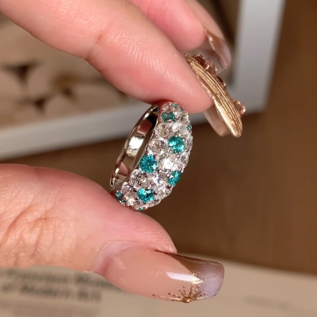 Paraíba Mint Blue Ring Women's Mint Mambo Gypophila Light Luxury Niche High-end Old Money Style Ring New