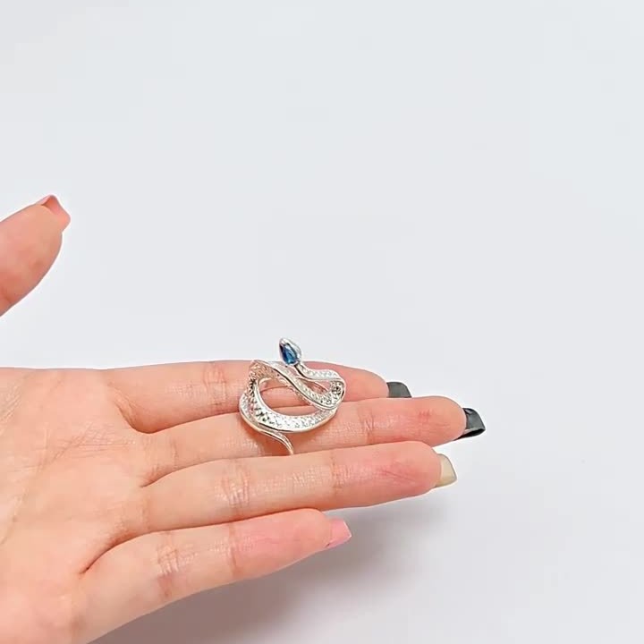 Blue Sky Topaz Snake Opening Ring Creative Niche Design Sense ins Cold Wind Ring