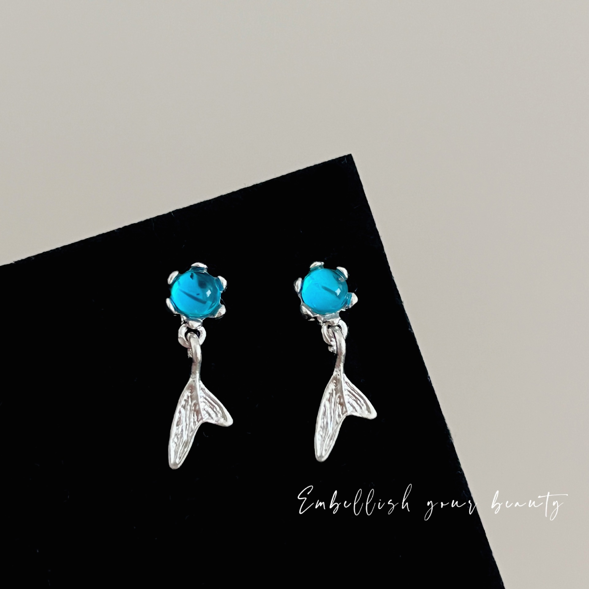 New Blue Moonstone Fishtail Earrings for Women Summer Niche Design Cold Style High-End Elegant Personalized Earrings