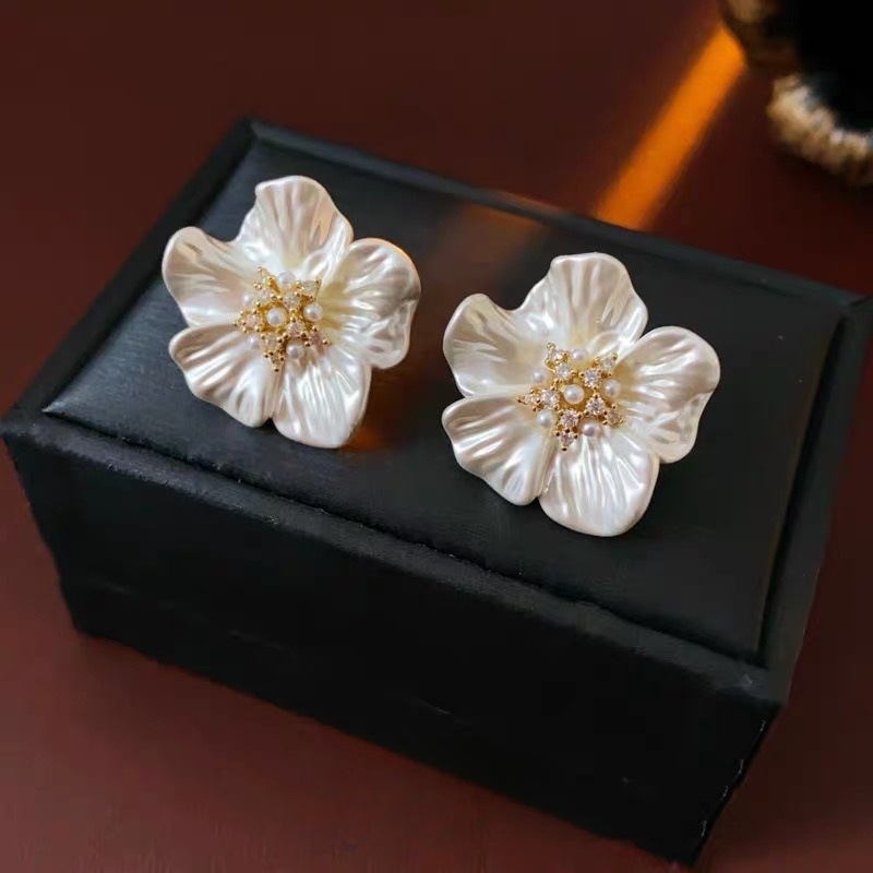 French Sweet Camellia Pearl Zircon Earrings for Women, Fashionable, Gentle and White Earrings, Elegant and Versatile Earrings