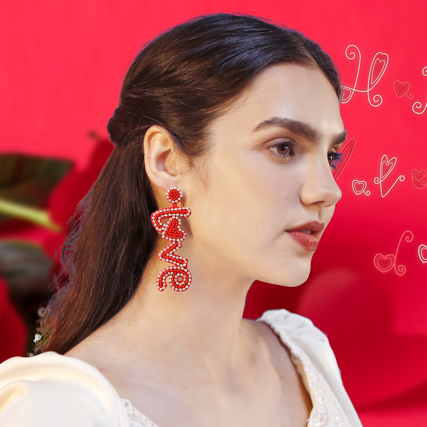 2026 Cross-Border New Valentine's Day Heart Earrings, Hand-Woven Romantic Heart-Shaped High-Quality Rice Bead Red Earrings