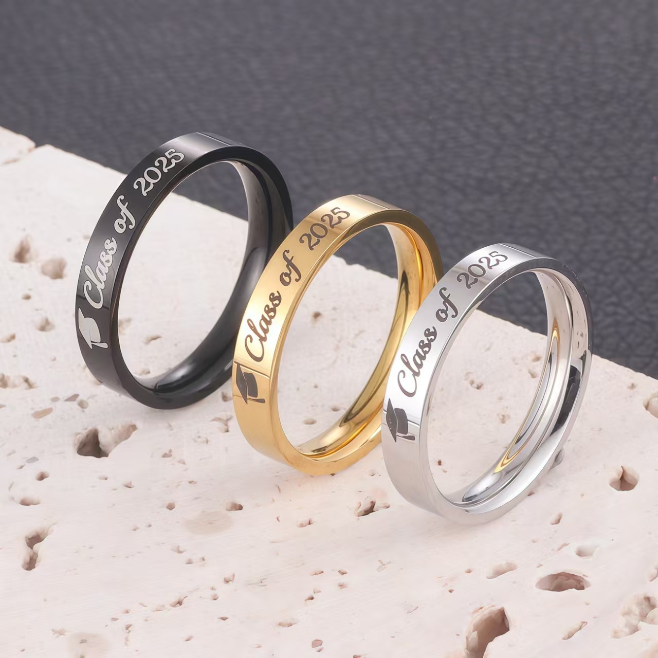 Customized Graduation Ring Memorial School Gift Ring College Student Gift Titanium Steel Engraving Ring