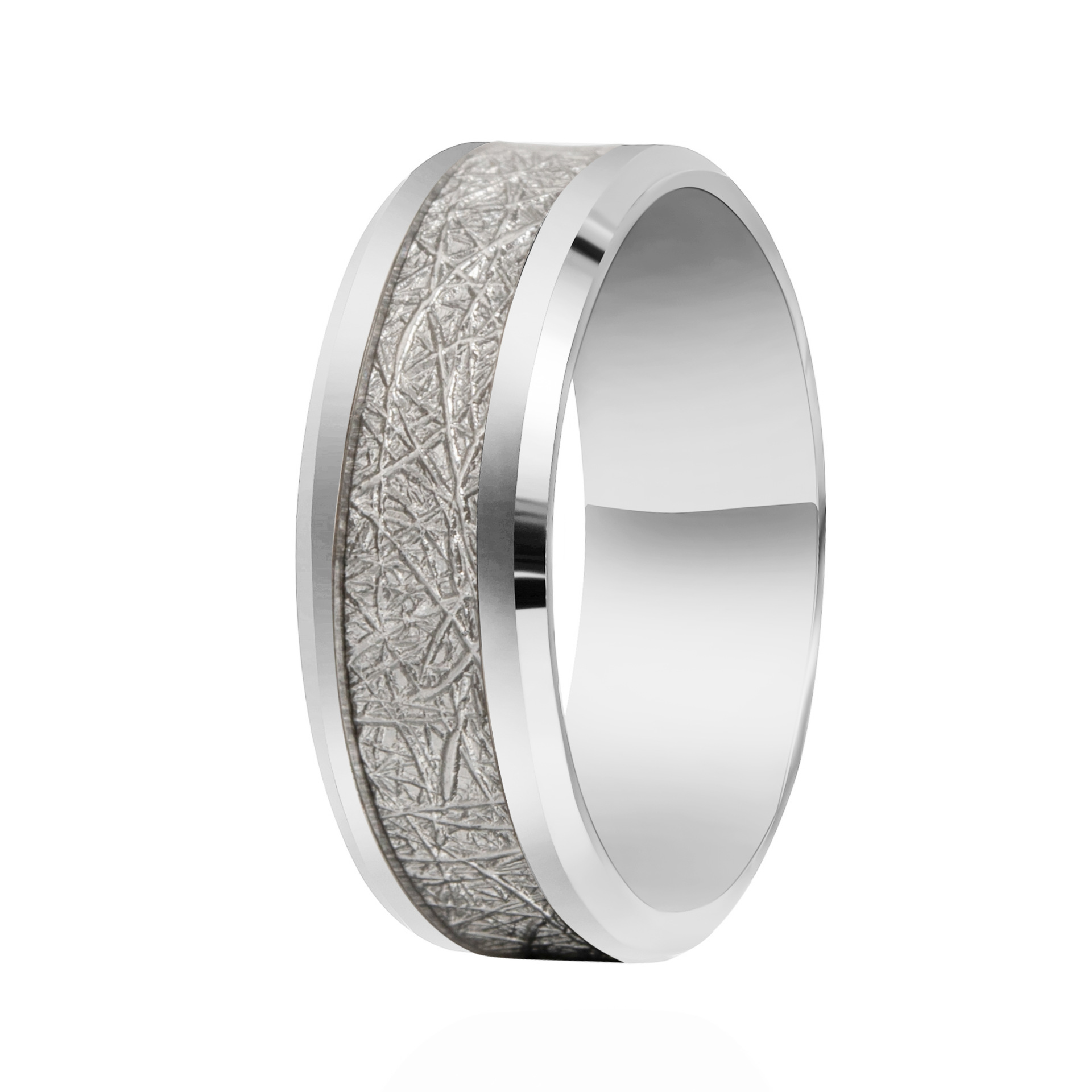New European and American white black men's personalized fashion stainless steel anti-meteorite fog pattern ring titanium steel silver foil jewelry